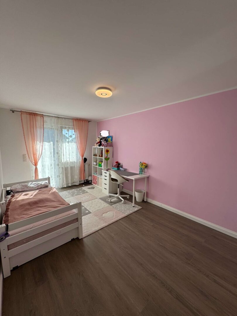Das 1. Obergeschoss verfügt über drei gut geschnittene Zimmer, die sich flexibel als Kinder-, Arbeits- oder Gästezimmer nutzen lassen. Ein modern ausgestattetes Badezimmer rundet diese Etage komfortabel ab.